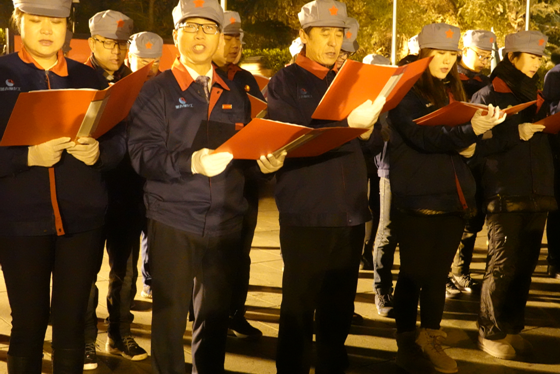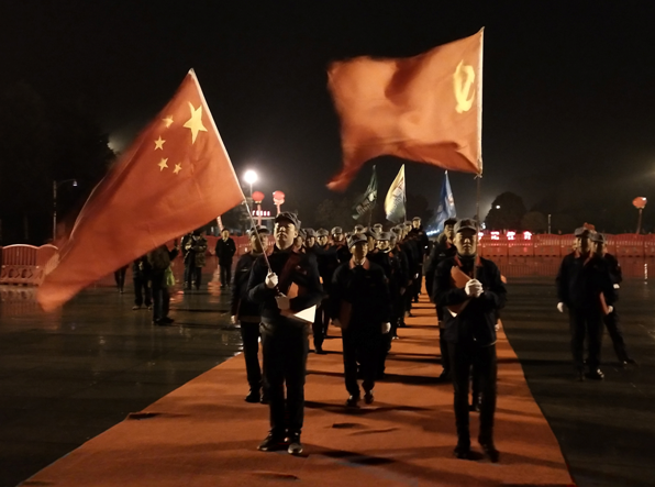 國旗招展,黨旗飄揚。12月26日4:50,奧吉娜緬懷偉人科創先鋒團全員整隊集合,邁著整齊矯健的步伐,高唱《中國人民解放軍軍歌》前往毛澤東紀念館銅像廣場。