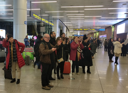 12月26日,10:30結束瞻仰參觀,18:30分順利抵達沈陽桃仙國際機場,在桃仙機場整隊齊頌毛主席詩詞《沁園春·雪》,2018奧吉娜韶山行緬懷偉人科創先鋒團祭拜毛澤東主席活動圓滿結束。
